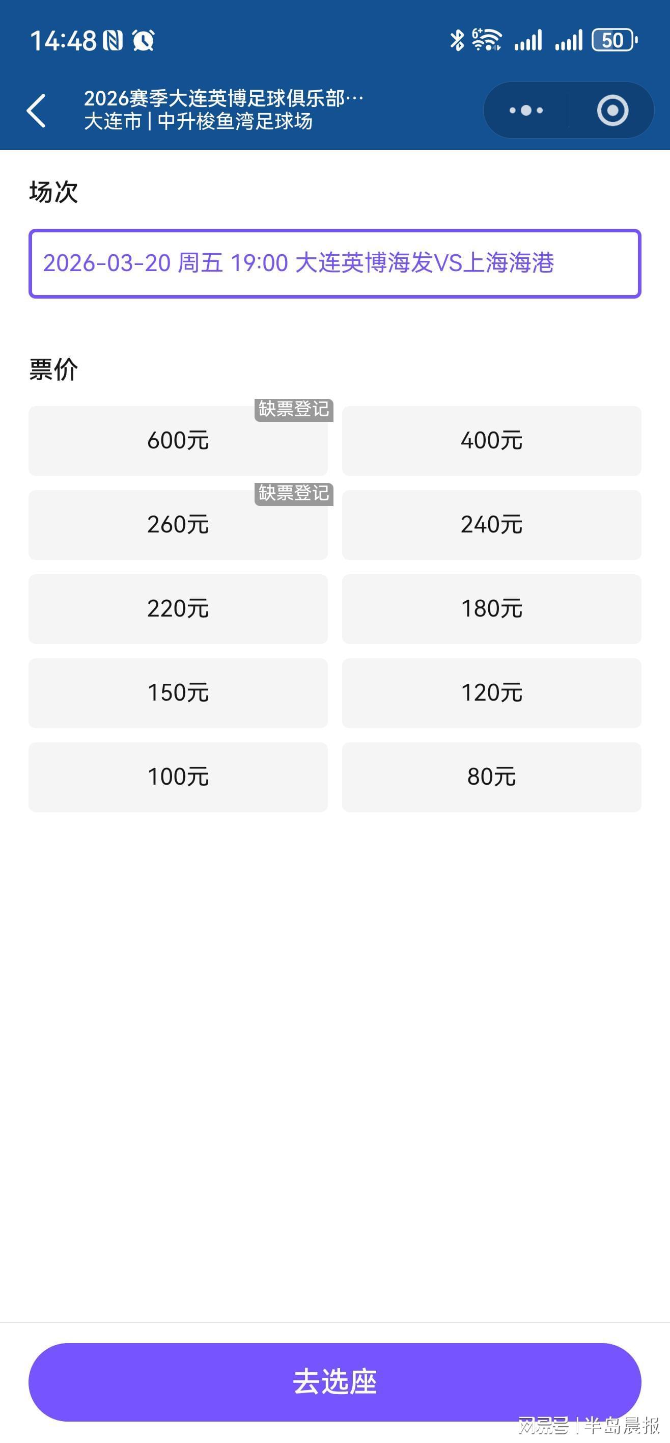20日19时,大连英博将在新赛季首个主场迎战上海海港。球票于16日下午发售,抢手程度明显低于上赛季,多数档位球票都不存在难抢的情况。比赛时间、天气、球票价格等因素都给球市带来了影响,球队开局两连败也是重要原因。